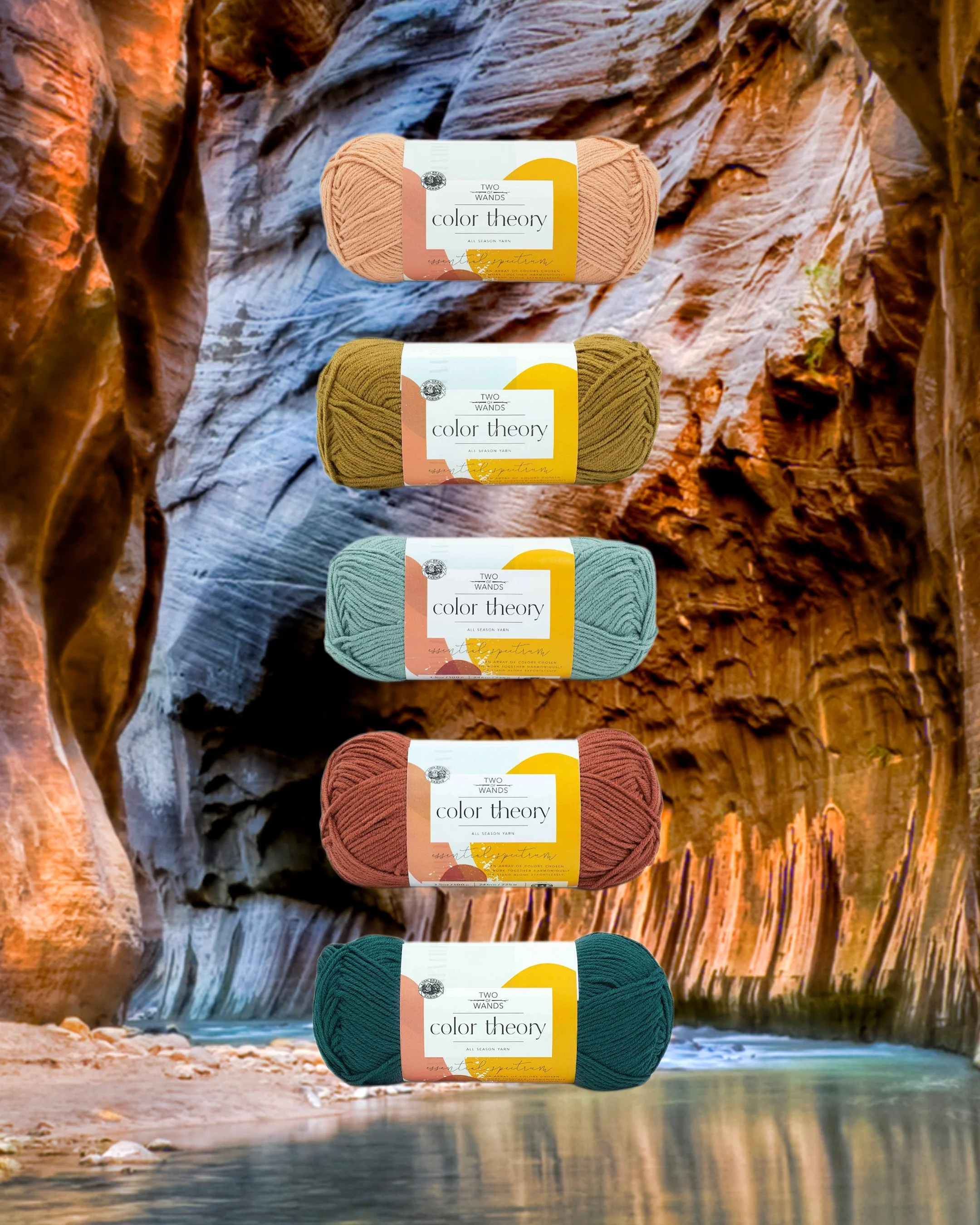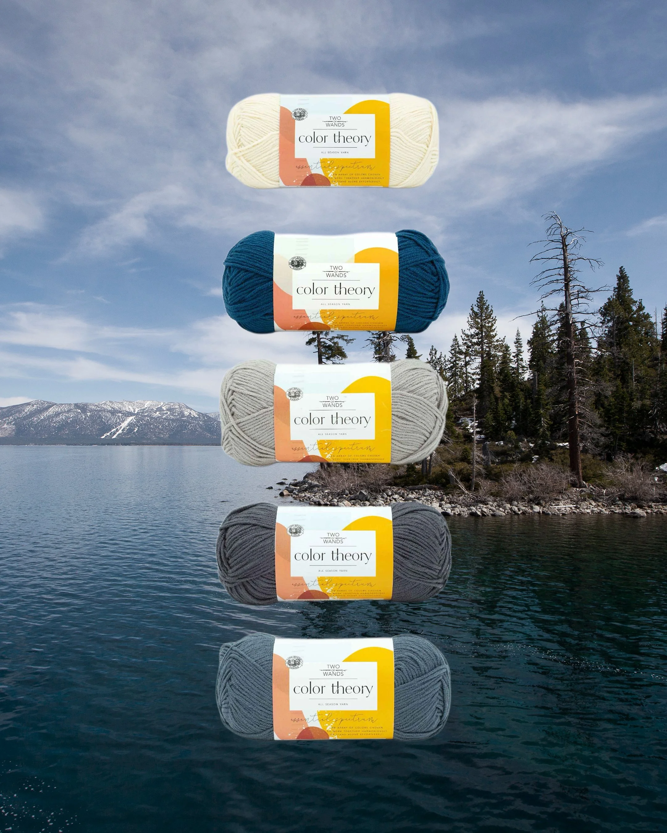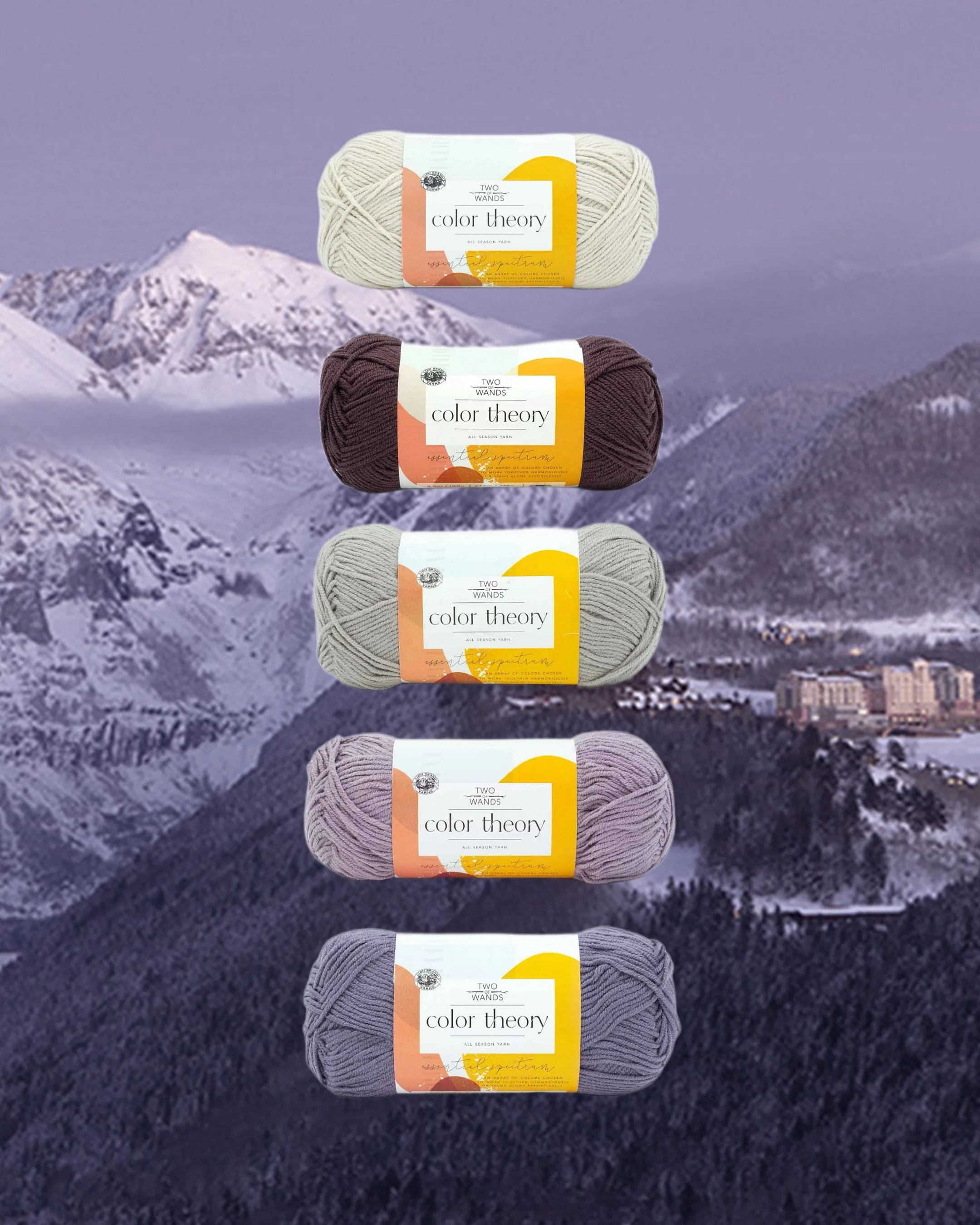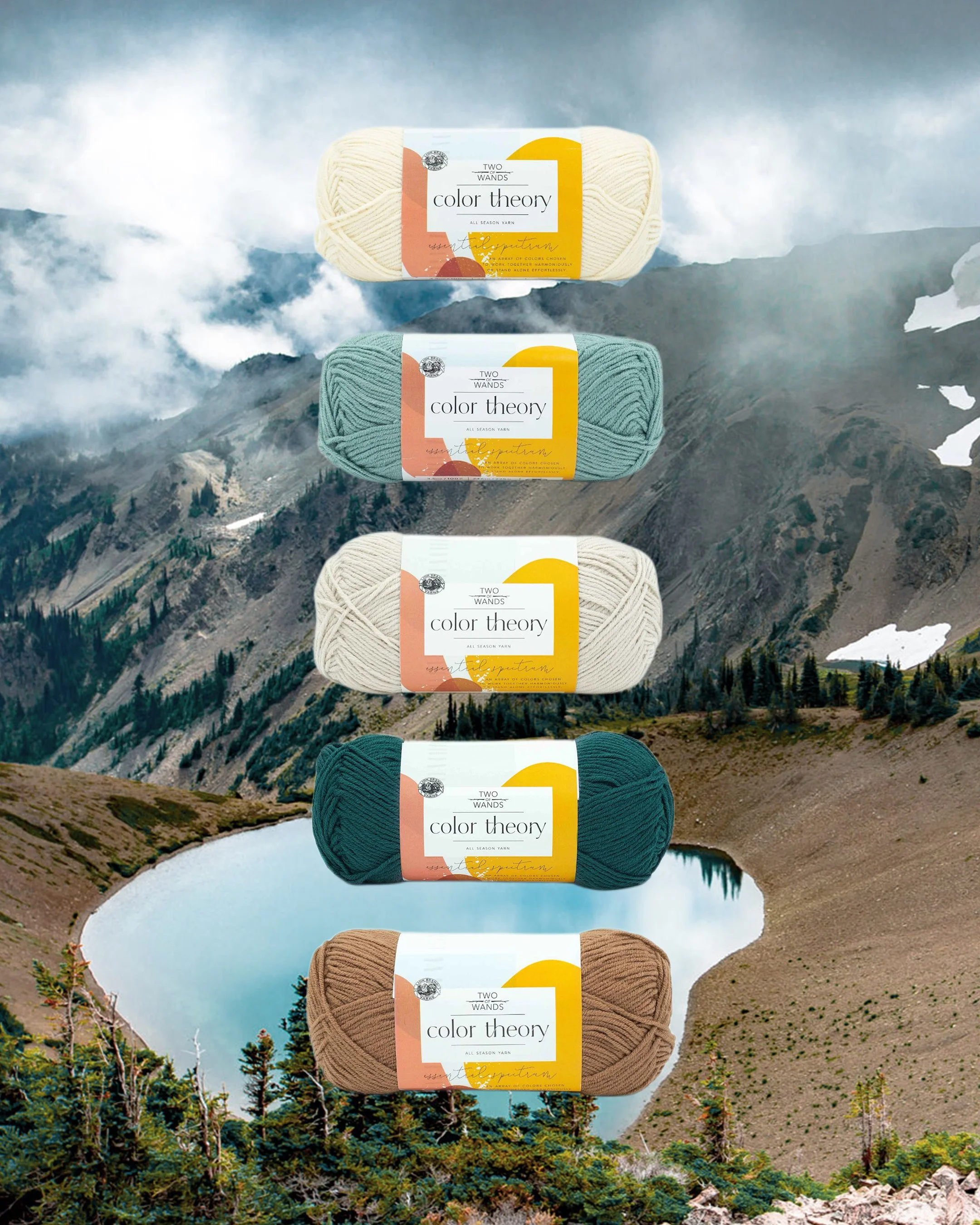 Some of you might be asking - why a re-vamp of the OG pattern? Fun fact, when I designed the Coast to Coast Wrap in 2018 I had a very specific color combo in mind and couldn’t find all of those colors in a single yarn palette, so I ended up combining two yarns with similar gauge (Lion Brand’s Touch of Alpaca and Wool-Ease). Back in 2023, the Our Maker Life team hosted a KAL for the project and since some of the colors I used had since been discontinued, I decided to re-knit it in Color Theory and put together a few options for combos using that palette of 18 colors. Cut to this summer when we launched another 6 colors in Color Theory and I knew I wanted to officially re-launch the pattern and offer some really beautiful themed combos using the now 24-color palette to showcase the new additions. I had several projects to wrap up before I could dedicate time to this, and with the chaos of the holidays out of the way I think January is the perfect time to indulge in a special project like this for oneself.