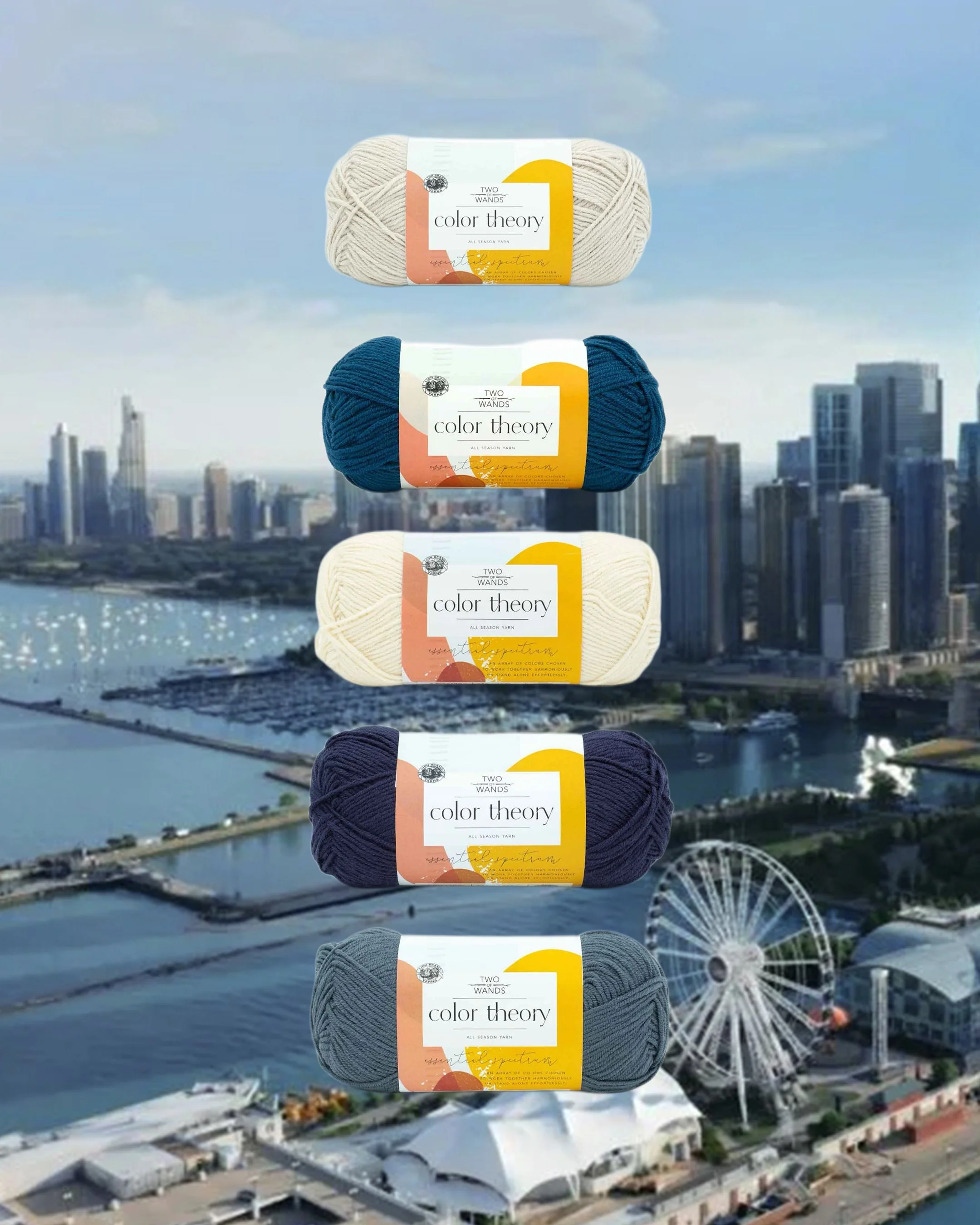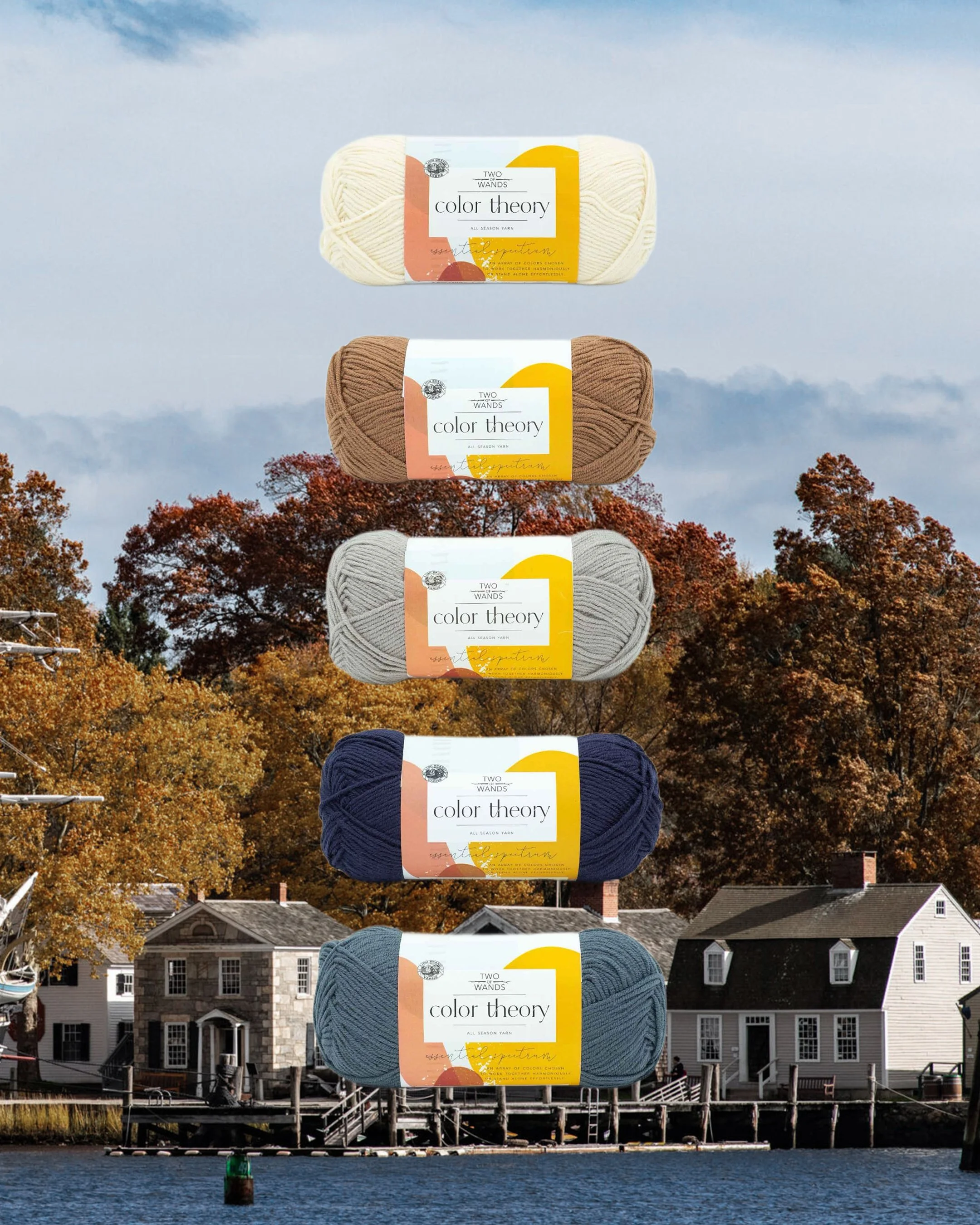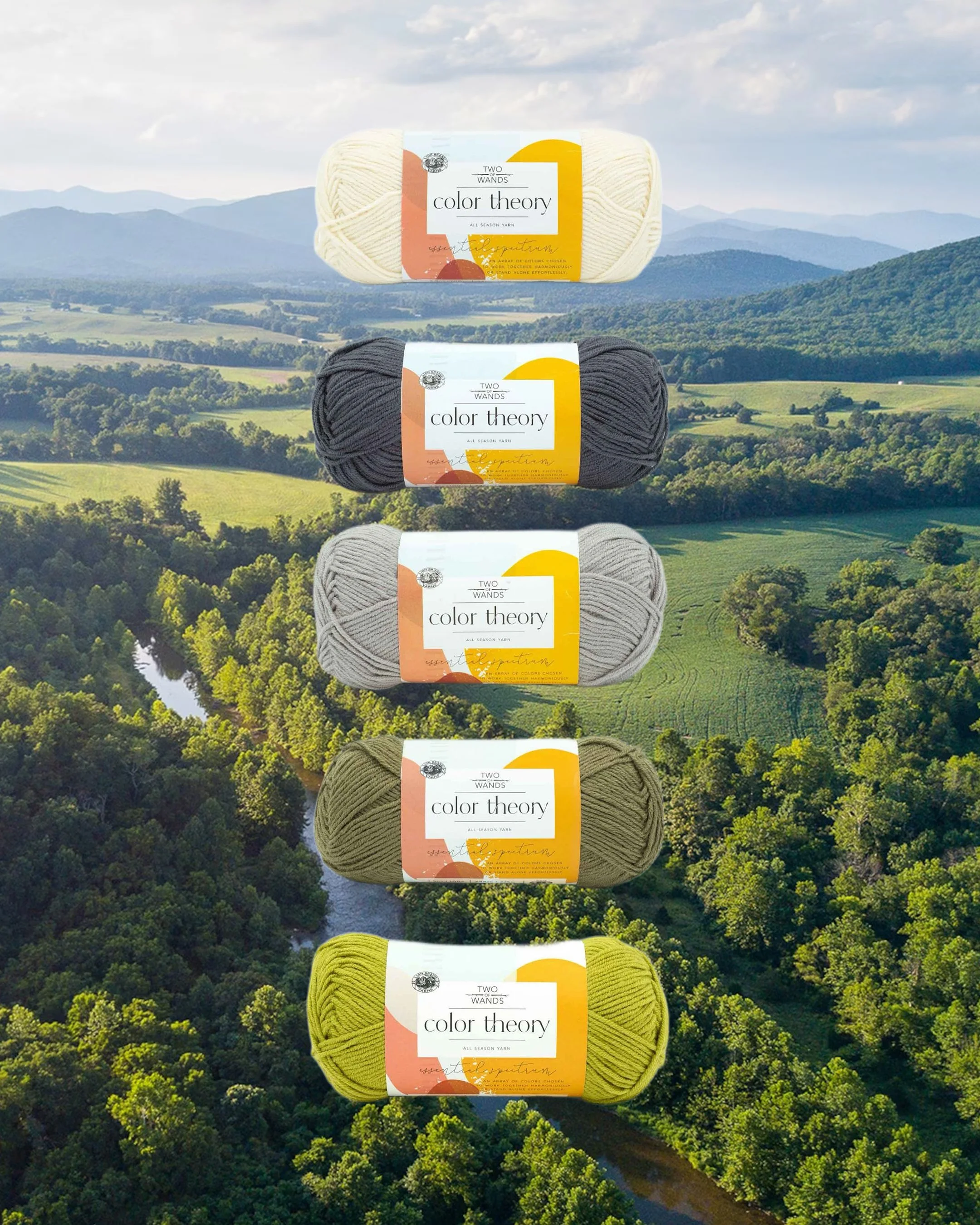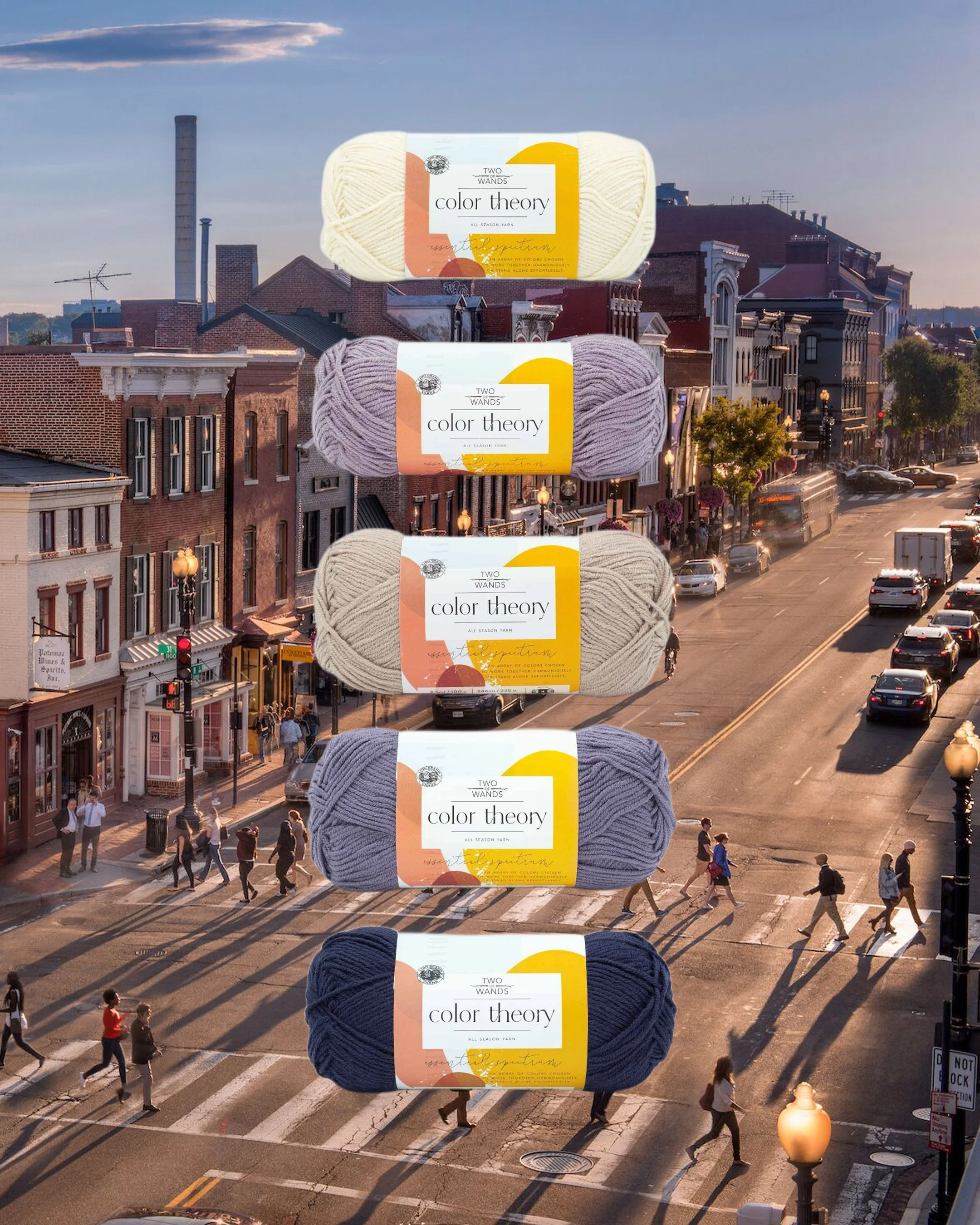 Some of you might be asking - why a re-vamp of the OG pattern? Fun fact, when I designed the Coast to Coast Wrap in 2018 I had a very specific color combo in mind and couldn’t find all of those colors in a single yarn palette, so I ended up combining two yarns with similar gauge (Lion Brand’s Touch of Alpaca and Wool-Ease). Back in 2023, the Our Maker Life team hosted a KAL for the project and since some of the colors I used had since been discontinued, I decided to re-knit it in Color Theory and put together a few options for combos using that palette of 18 colors. Cut to this summer when we launched another 6 colors in Color Theory and I knew I wanted to officially re-launch the pattern and offer some really beautiful themed combos using the now 24-color palette to showcase the new additions. I had several projects to wrap up before I could dedicate time to this, and with the chaos of the holidays out of the way I think January is the perfect time to indulge in a special project like this for oneself.