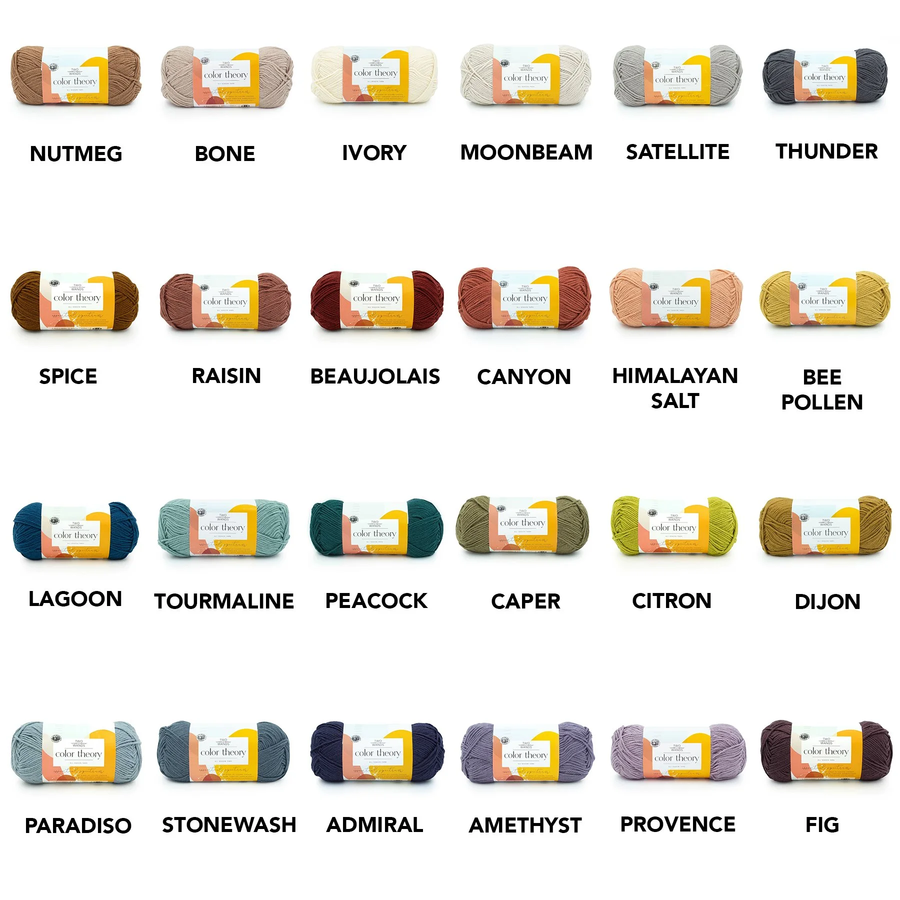 The current Color Theory palette consists of 24 colors, with seasonal hues and an array of tints and shades to build endlessly gorgeous combos. For reference, here is a look at the full palette: