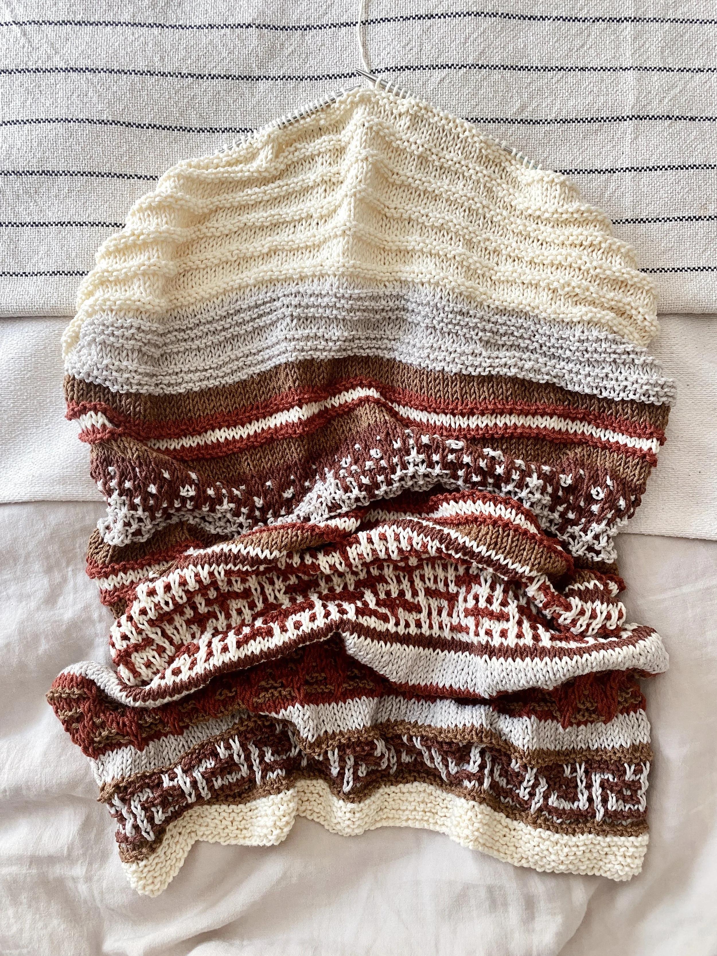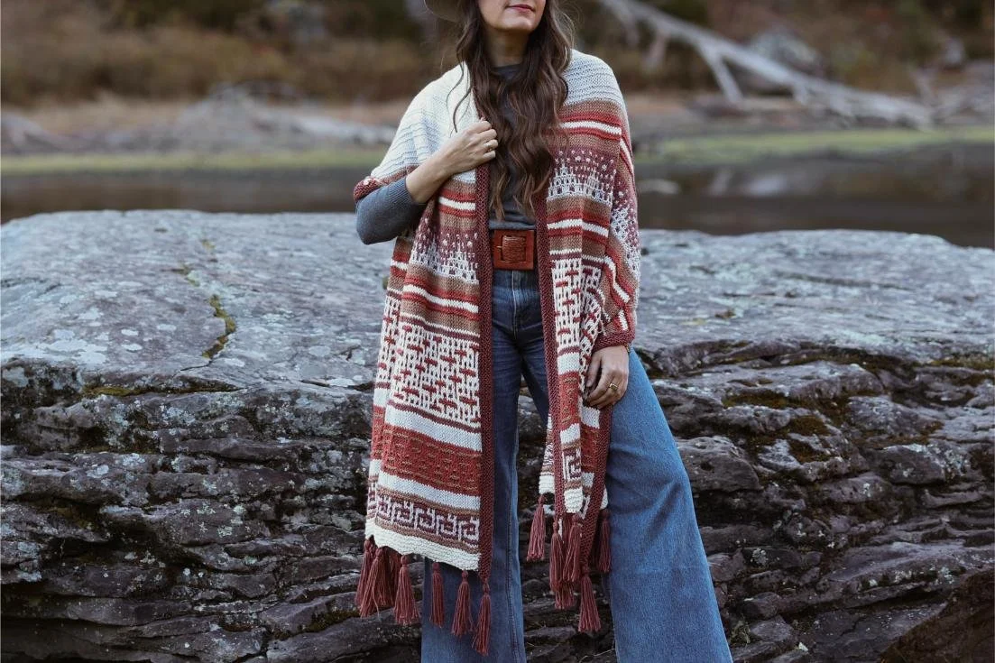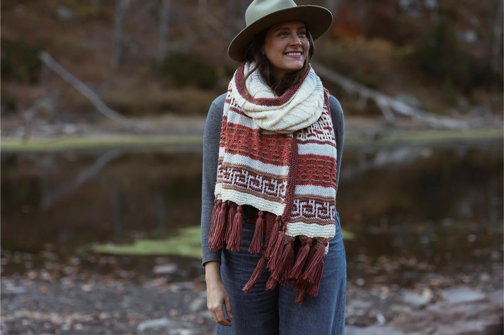 Re-launched and refreshed, the Coast to Coast Wrap is back in a new yarn with a new KAL! Originally designed in 2018, this has consistently been one of my best sellers and personal faves, and I am so thrilled to offer an official knit-along for this project! I know the mosaic colorwork on this beauty looks intimidating, but I promise you it’s actually a breeze and this is a casual ease-into-the-new-year type of KAL. The kits are available NOW and I’ve included a calendar of all pertinent dates over the course of the 6 week knit-along below along with lots and lots of info on the design, the KAL, and the color combos.