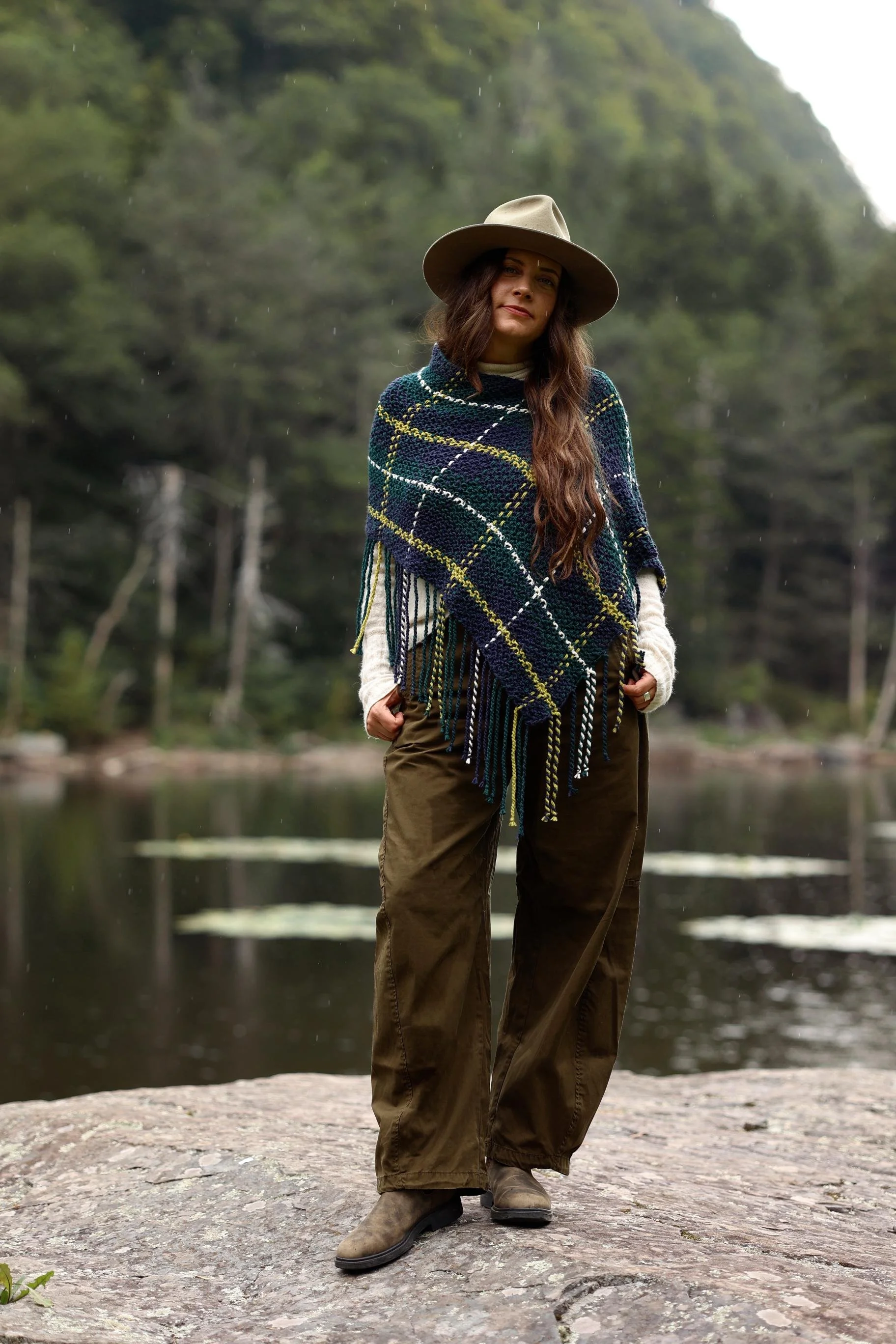 The finishing details of weaving and twisting the fringe do take a bit of time, but the base of the poncho whips up so fast that it all evens out to be fairly low on the time commitment scale for something of this level of beauty. And even though those last steps seem to take a little longer than the actual knitting, the process of watching the plaid and fringe come to life is SO FUN that it will keep you engaged and excited the whole time.