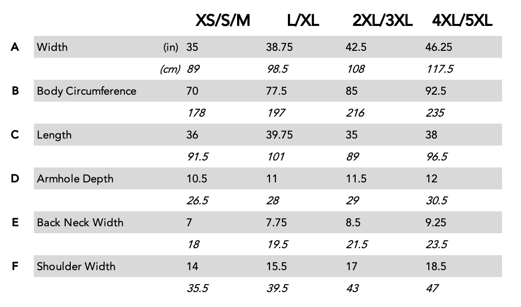 Sizes: XS/S/M (L/XL, 2XL/3XL, 4XL/5XL)
