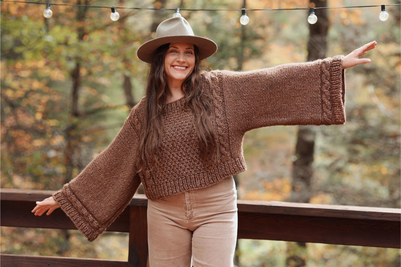 When the queen of Tunisian crochet asks you to collab on an epic make-along using her gorgeous luxury yarn line, you say YES! So earlier this year when my dear friend Toni of TL Yarn Crafts reached out with the idea to design sister patterns with her Apricity yarn in collaboration with Hobbii, I jumped at the opportunity. The Golden Hour MAL consists of two sweaters with a similar silhouette, but totally different executions - a solid color textured knit design by me called the Lucent Sweater, and a two-tone colorwork Tunisian crochet dream designed by Toni called the Glimmer Poncho. The MAL kicks off today, October 27th 2025, and all of the details along with the free pattern for the Lucent Sweater can be found below. As always, you can purchase a printer-friendly PDF here, and you can view the full video tutorial here.
