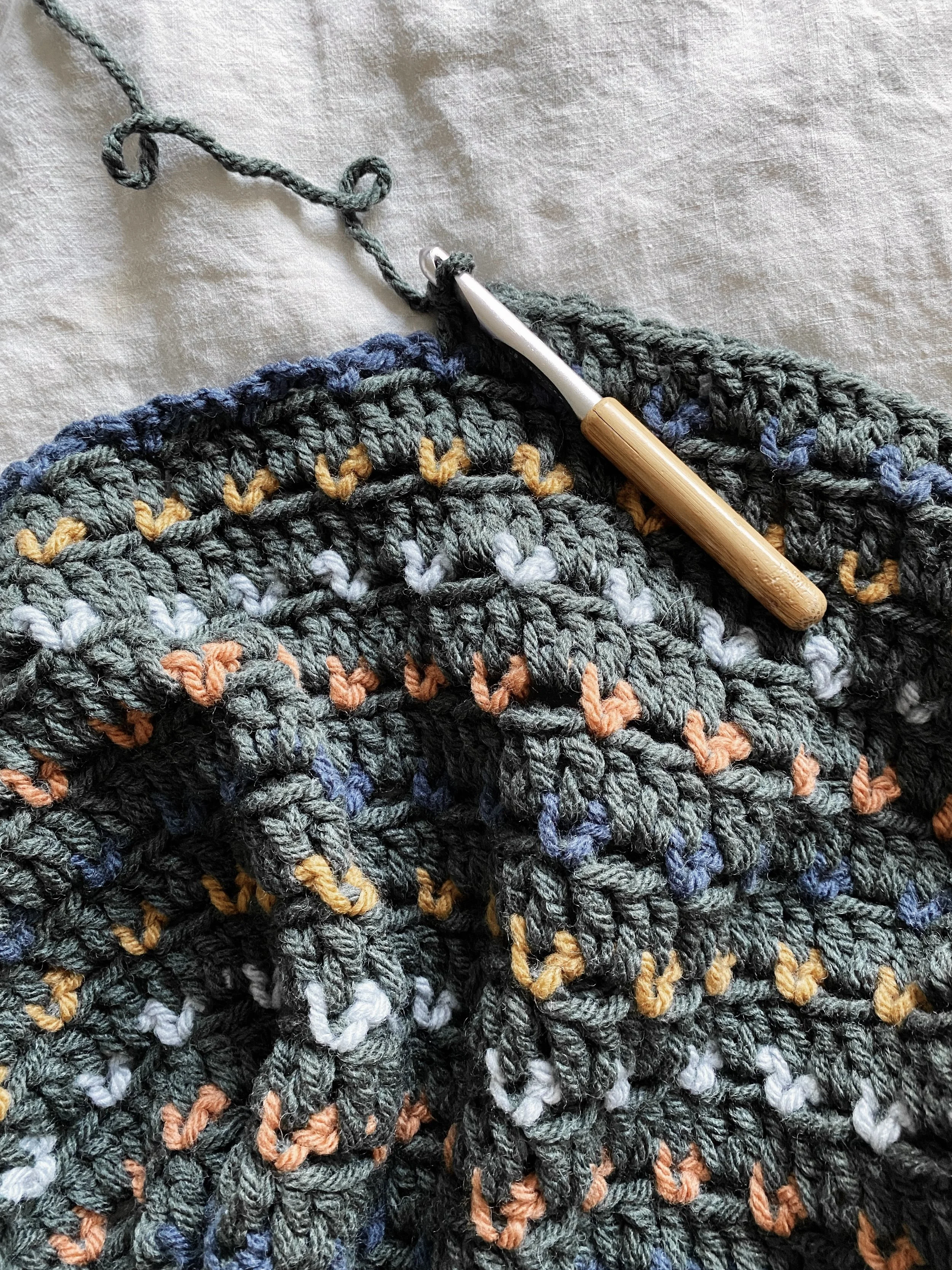 Color Theory is a 12-ply yarn spun not-to-loose and not-too-tight to allow for loft and versatility. Yarns like Lion Brand’s Woolspun and Color Made Easy were both 12-ply and had that really tubular shape to them that gave great stitch definition, but they were more tightly spun which made projects heavier and more dense. With Color Theory you get the squish and stitch definition of a 12-ply yarn, but the lighter spin takes away the bulk and lets each stitch fill up a bit more space for less heavy finished pieces.
