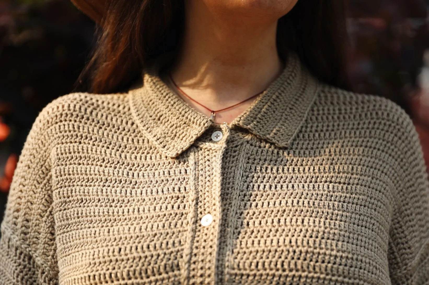 This crochet take on a classic men’s button down is the cool girl staple for summer! With thoughtful details like top stitching, vented cuffs, a curved shirttail hem and more, this iconic piece evokes all the elements of its woven fabric inspiration.